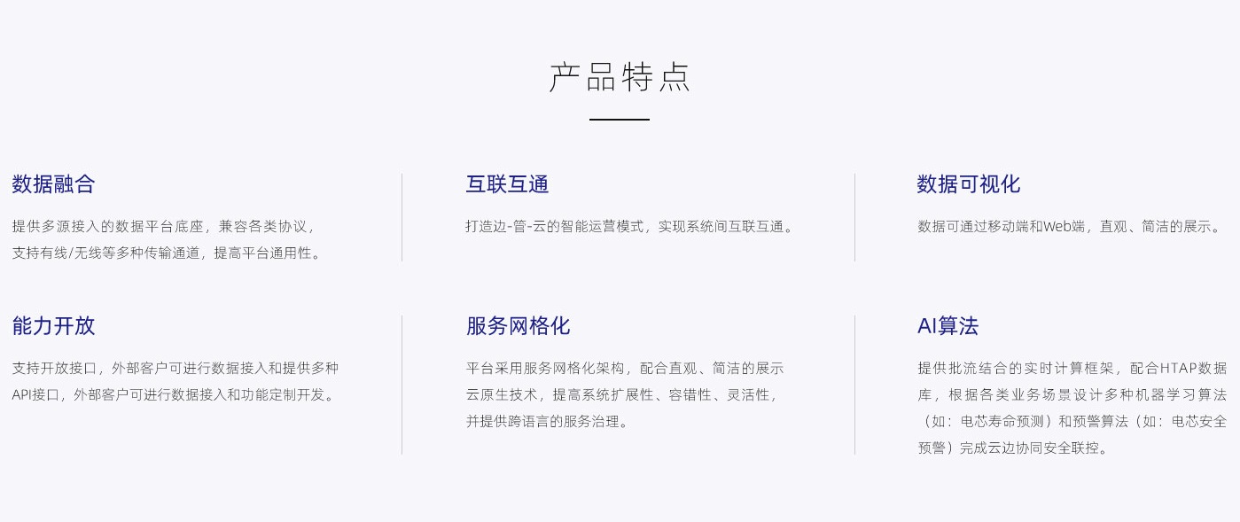 星空体育app储能业务面向数字化和智能化布局的重磅产品,平台建立了多源接入的数据融合平台底座,主要包含协同监控、智能运维、用能收益评估、智能预警、控制策略优化等功能,支持平台开放服务;平台覆盖建筑绿色用能、新能源发电、车网融合、氢电融合等能源生态相关业务。