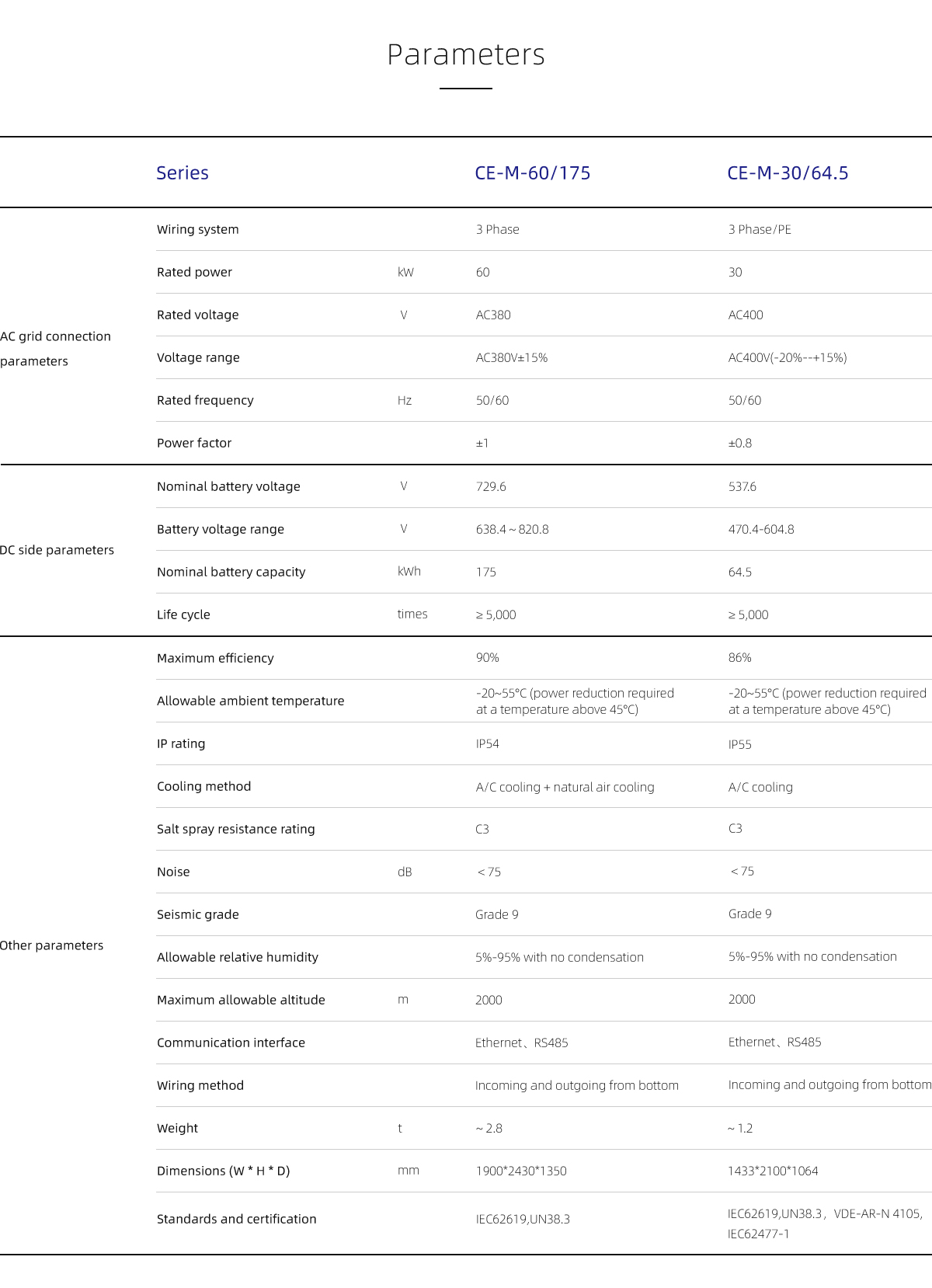 This product, integrating battery, BMS, PCS, EMS, air conditioning and fire prevention system, is applicable to substations, small industrial and comm-ercial buildings, hospitals, charging stations and families, and features peak shaving, new energy co-generation, dynamic capacity expansion, demand management, power quality management, emergency power standby and other functions.